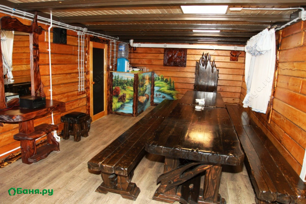 Уютная и вместительная баня, на внутренней территории есть мангал и веранда. Вместительный банкетный зал до 20 человек. Месторасположение - рядом с лыжной базой "Белочка".