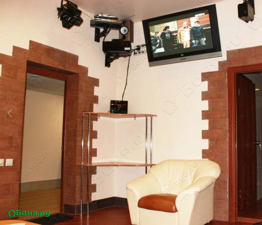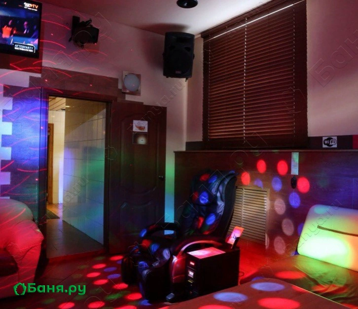 Установлено несколько свето-музыкальных установок и акустическая аппаратура для шумных вечеринок.