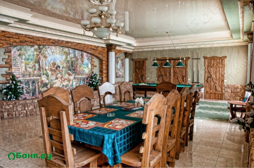 Банный комплекс Гостиный Дом включает 17 бань и саун.В главном здании находятся 5 саун:Деревенька - Хуторок - Санторини - Русская - Царские палатыОбщественная баня- спа-центр с многочисленными парнымиКаждая сауна и баня имеют неповторимый колорит русской, украинской, скандинавской и азиатской традиций приёма водных процедур и парения). В комплексе расположен единственный в г. Брянске большой подогреваемый открытый бассейн, работающий круглый год. В каждом зале имеются небольшие бассейны-купели, непосредственно у парных.В коттеджном комплексе Гостиный Дом расположеныв 6 коттеджахИндивидуальные сауны(с парными: финская, хамам, инфракрасная, соляная, кедровая бочка):Уютный - Райский - Сакура - Лагуна - Барин - ХамамВсе сауны располагают просторными гостиными с комнатами отдыха и релаксации.