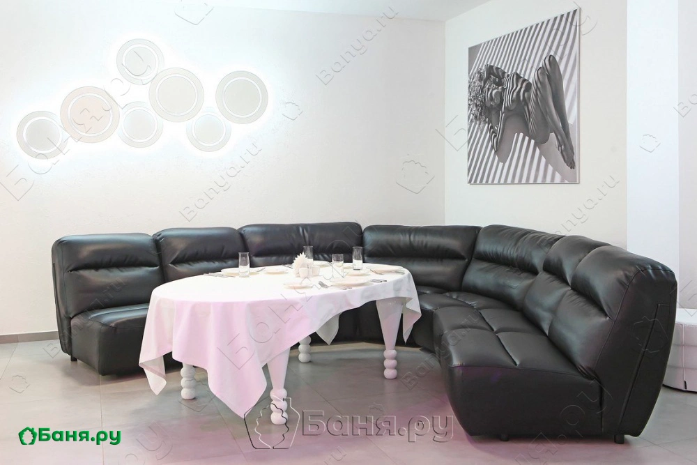 Две раздевалки, обеденная зона, комплексное обслуживание из ресторана (авторская, американская, европейская, итальянская, русская кухни, вегетарианское и детское меню, винная карта).