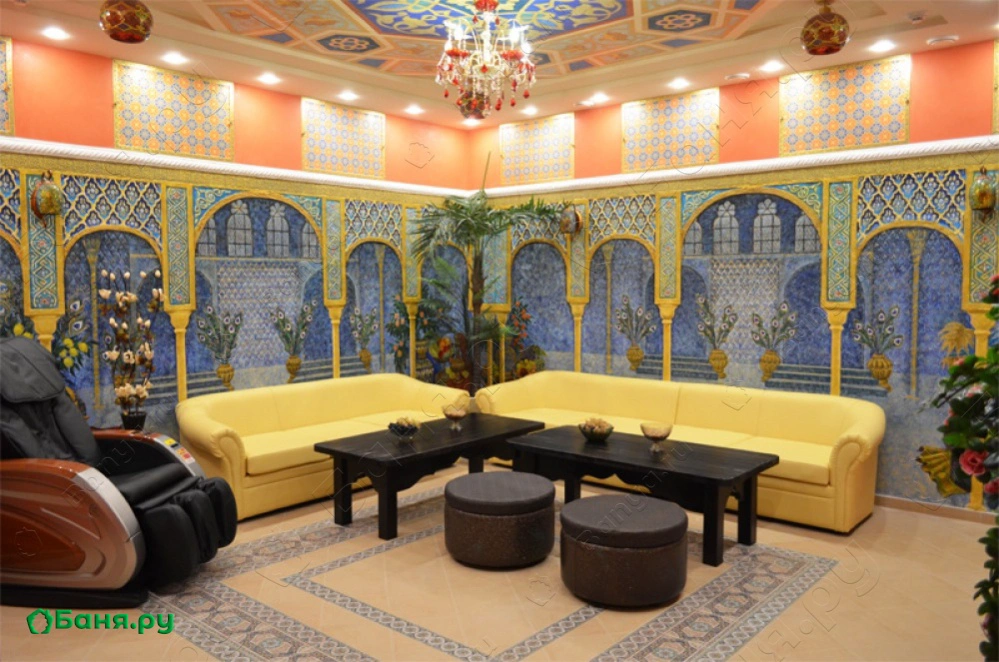 г. Чебоксары, ул. Мясокомбинатский проезд, 2АВосточный зал для ценителей восточного дизайна! Здесь все подобрано для полного релакса каждого! Зал исполнен в оригинальном турецком стиле, который обеспечит незабываемый отдых для веселой дружной компании.
