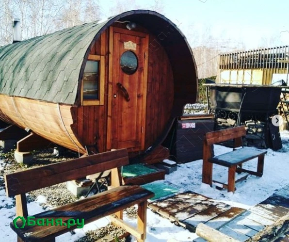 г. Иркутск, ул. Лебедева-Кумача, 15Баня-бочка из ТЕРМО-КЕДРА на дровах, только натуральные материалы высокого качества, НЕФРИТ в каменке, прямой выход к проруби в Ангаре, чистый воздух и "банный чан" с подогревом. Из-за своей формы баня рассчитана на небольшую компанию или семью!