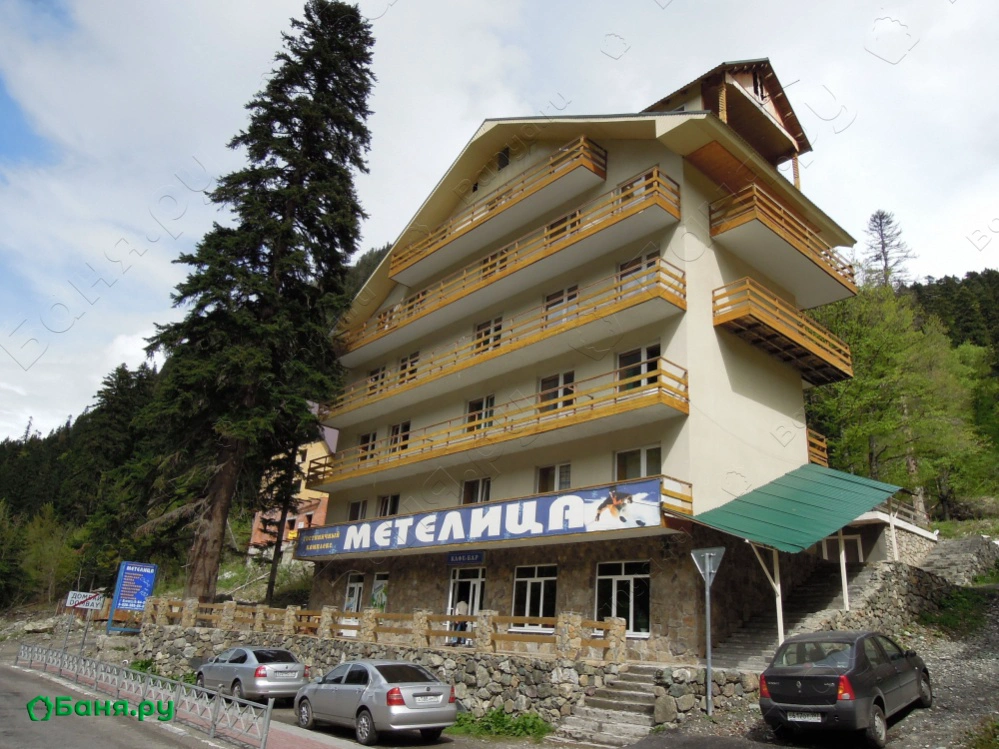 пгт Домбай, ул. Карачаевская, 62К услугам проживающих настоящая русская баня с небольшой купелью, в которую можно окунуться после парения с дубовым веником. Также функционирует финская сауна в «Sky Hotel», гости очень любят ее, известно, что регулярное посещение сауны оказывает благоприятное воздействие на организм, снимает усталость и оздоравливает в целом.