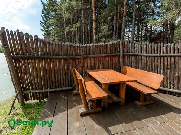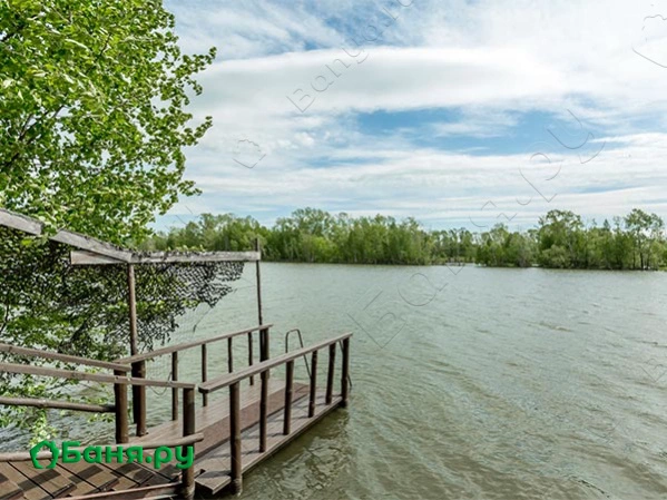 г. Новокузнецк, ш. Притомское, 4Небольшая баня в два этажа, рассчитанная примерно на шесть человек. Парилка и комната отдыха с окном, выходящим на воду, располагается на первом этаже. На втором небольшая комната, где можно удобно расположиться после жаркой парной и восстановить силы. На площадке перед баней столовая зона, огороженная бревенчатым забором. Спуск к воде является несомненным плюсом для бани – окунутся в прохладную воду после бани не только полезно, но и очень приятно.