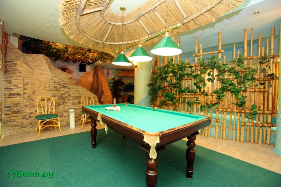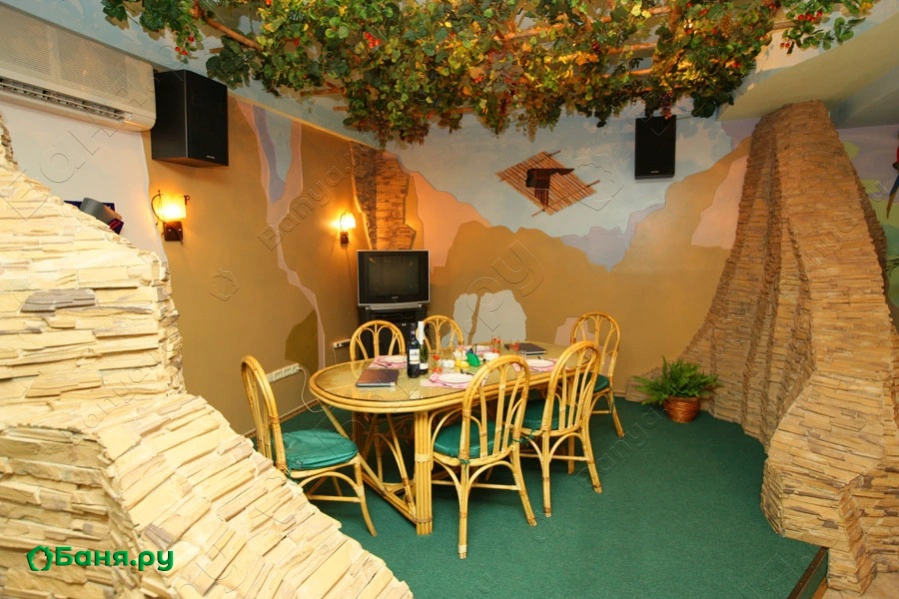 В «Джунглях» - заросли бамбука и лиан, зона отдыха в пещере из дикого камня, бассейн причудливой формы с гейзером.