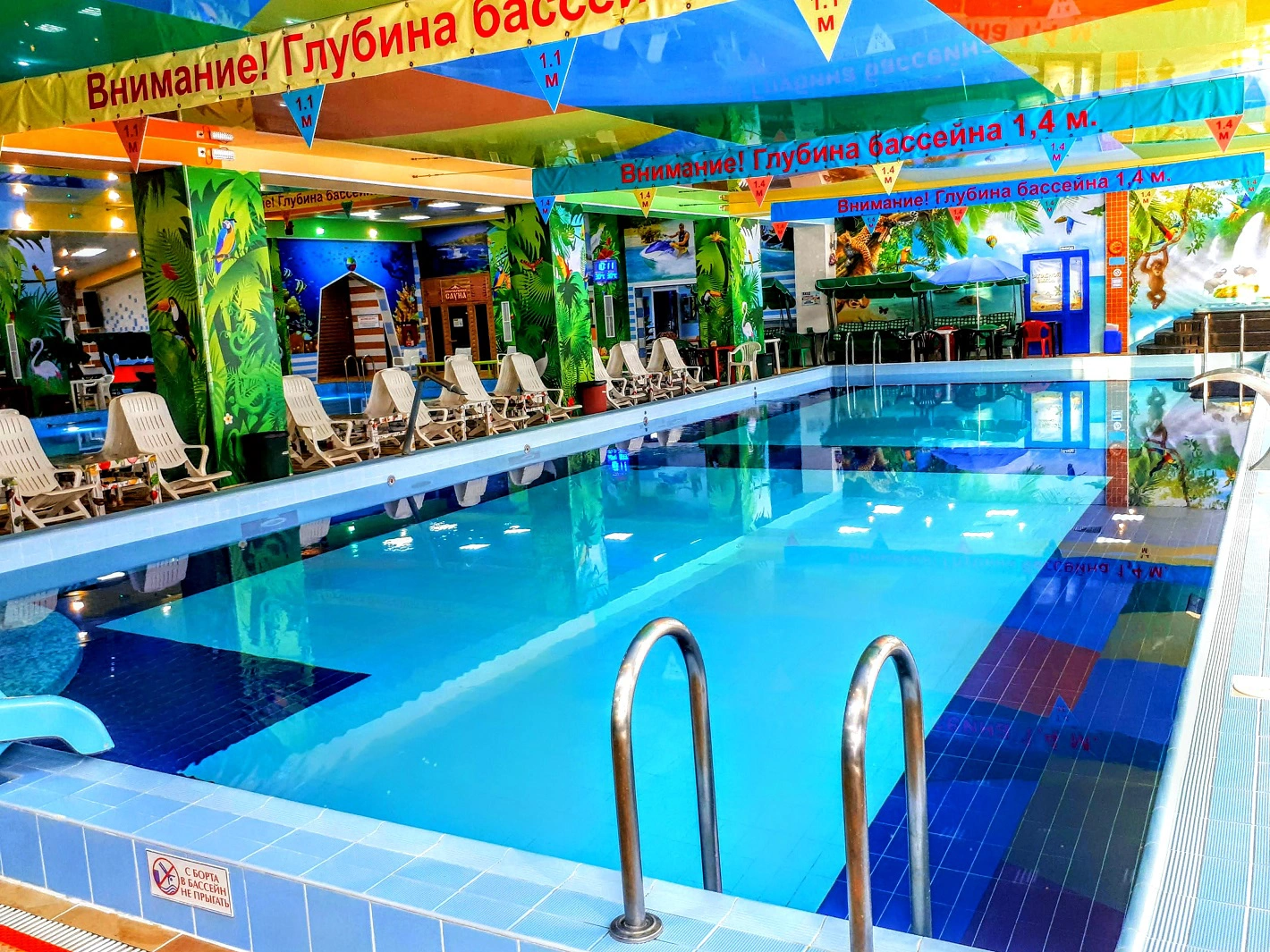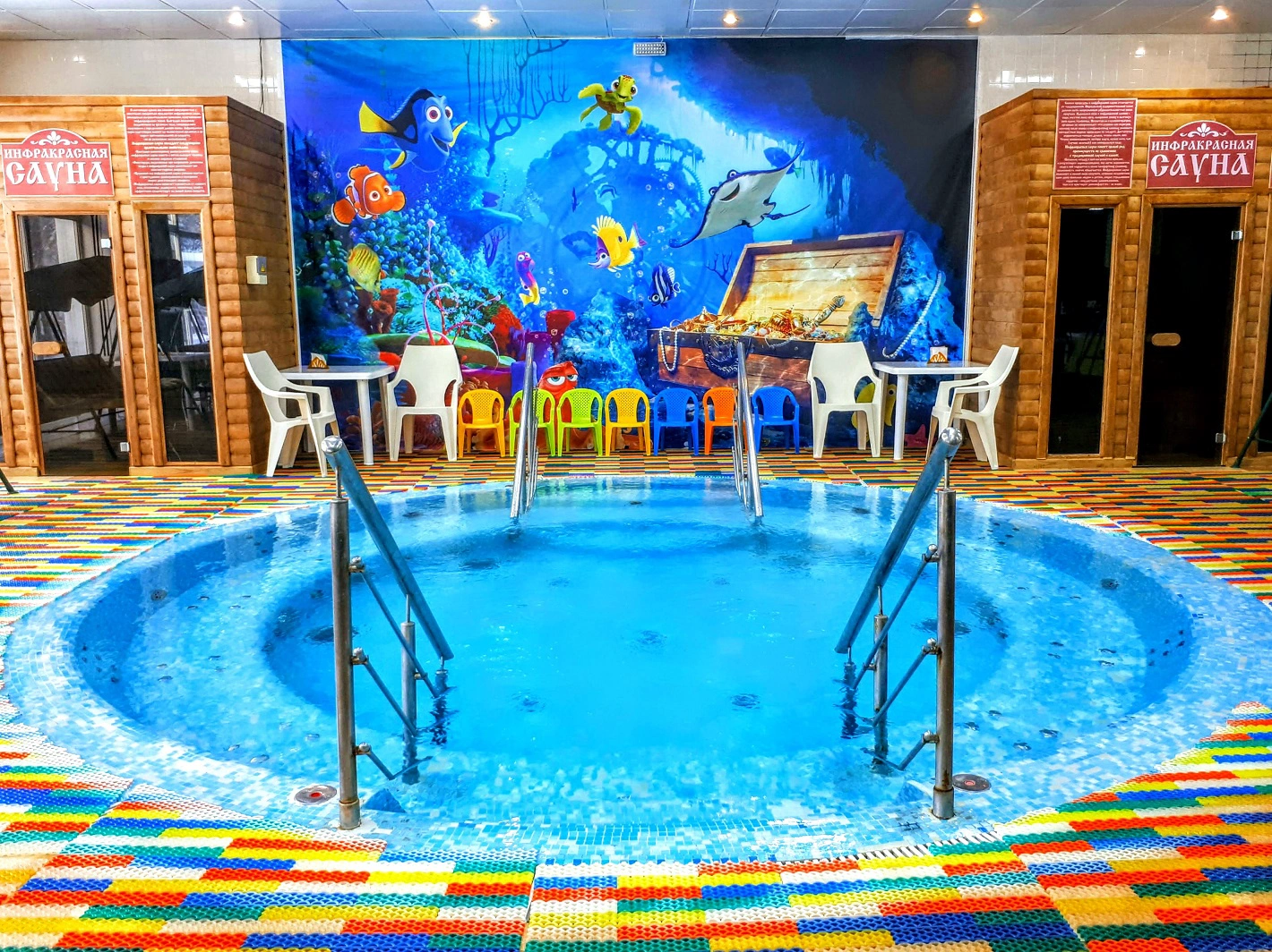 Комплекс с бассейнами и саунами(финская, хамам, инфракрасная), подходящий для отдыха любой возрастной категории, обстановка пляжная.Имеется бар с разнообразными сортами чая и коктелей, а также можно перекусить.