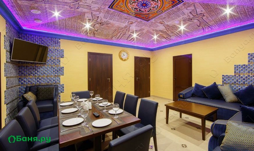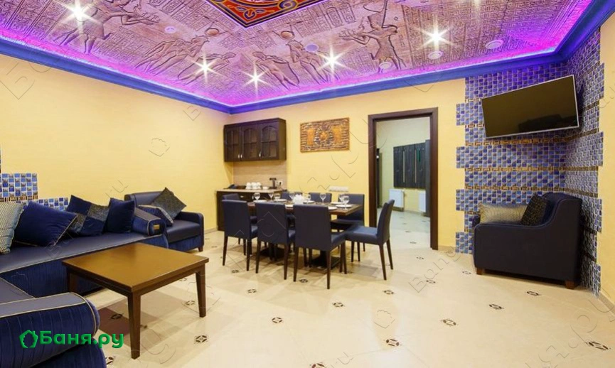 В настоящее время, зал "Египет" является современной и все же подлинной интерпретацией лучших традиций древнего Египта, которая обладает специфичной обстановкой богатства и роскоши древней цивилизации и к тому же, располагает гармоничным интерьером фараонов и верховных жрецов. Отличительной чертой интерьере представленного зала является древние Египетские иерогрифы, отображение тематической символики в красках окружающего мира: песочного и золотистого. Помещение представляет собой целый комплекс, который обладает всем, что необходимо человеку. А именно: получение удовольствия и релаксации, оздоровления тела, души и мыслей. Оздоровляющие мероприятия благоприятно влияют на костно-мышечную систему, расширяет сосуды и улучшает работу сердца. В конце концов вам стоит посетить Египетскую баню, чтобы в итоге просто унести прекрасное настроение и море новых впечатлений.