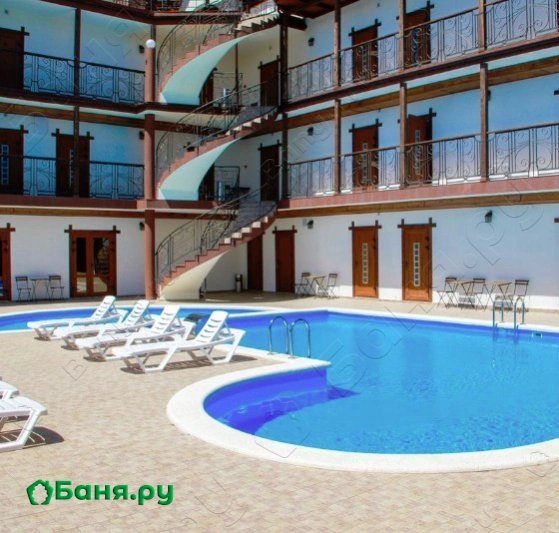 г. Геленджик, ул. Васильковая, 8Гостевой дом расположен в Голубой Бухте, это идеальное место для семейного отдыха с детьми, для людей уставших от шума большого города и суеты, это чистейшее море и необыкновенный морской воздух в сочетании с запахом соснового бора.Открытый бассейн с гидромассажем и каскадом, сауна на дровах с отдельным бассейном внутри, кафе, бильярдная, солярий на открытом воздухе с прекрасным видом на море, подземная автопарковка - все эти услуги к вашему распоряжению в нашем гостевом доме.