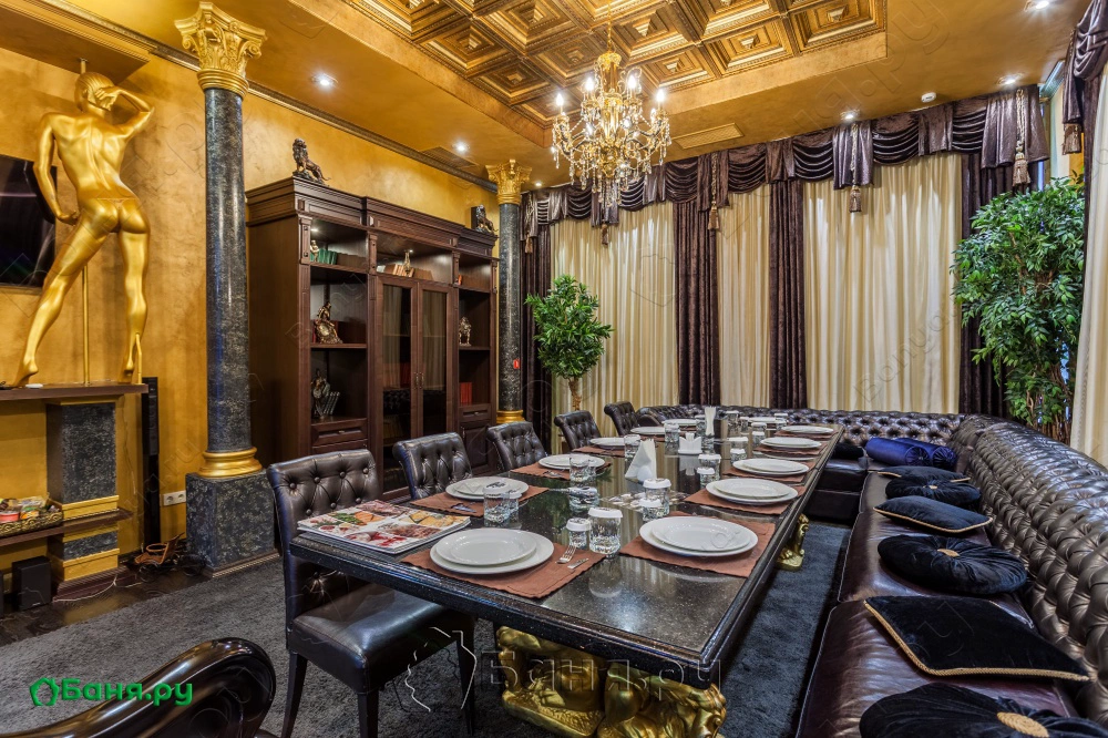 г. Краснодар, ул. Гаврилова, 1аРоскошный банкетный зал с большим столом, комфортными кожаными диванами, мраморными колоннами и великолепными хрустальными люстрами погружает гостей в богемную атмосферу светского общества. А в соседнем помещении вас ждет фантастический лазурно-голубой бассейн с чистейшей водой и горкой, с которой так приятно скатиться после жаркой парной. Уважаемые гости, на депозитную сумму Вы можете заказать любые банные услуги, напитки в баре и блюда по кухне.
