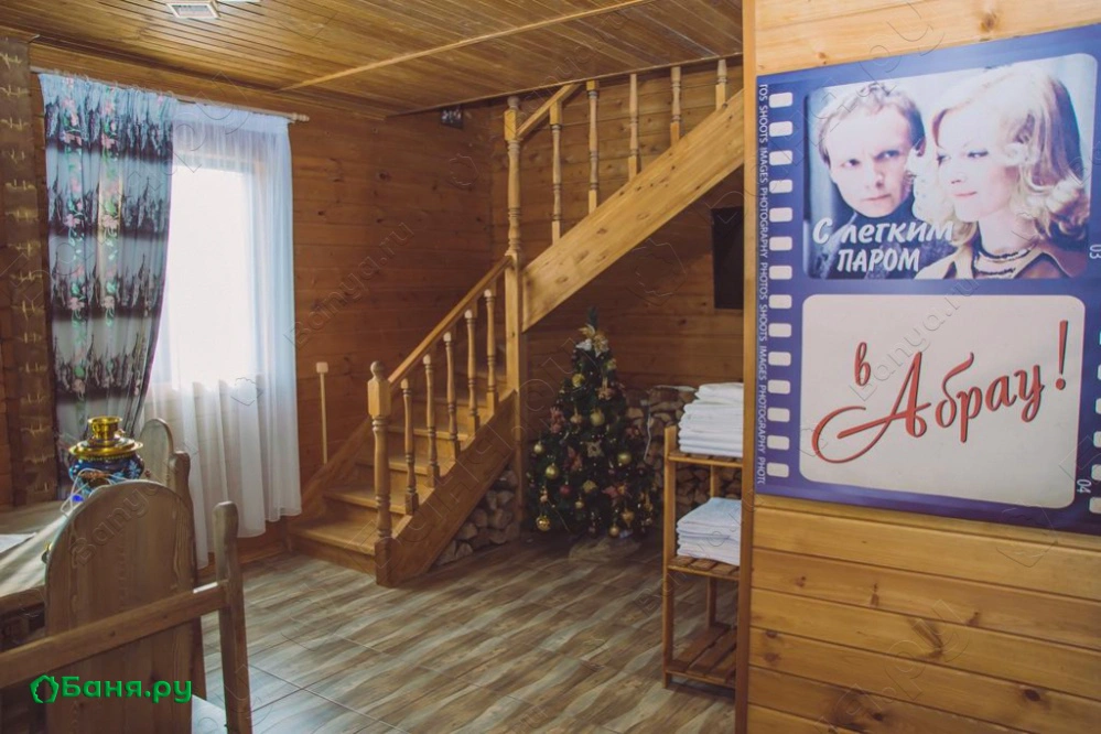 К услугам гостей отдельно стоящий банный коттедж из сруба с русской баней и двумя спальнями и двумя верандами на первом и втором этажах для отдыха. в мир Кино, вспомнить знаменитое: «И жить хорошо …!», «С легким паром… в Абрау» стало возможны в нашем деревянном доме «Мосфильм». Аромат деревянного бруса, антураж в стиле советского отечественного кинематографа не оставят равнодушным ни одного гостя. Уютный банный зал, душистые веники и свежезаваренный чай из трав снимут усталость, подарят бодрость и хорошее настроение.