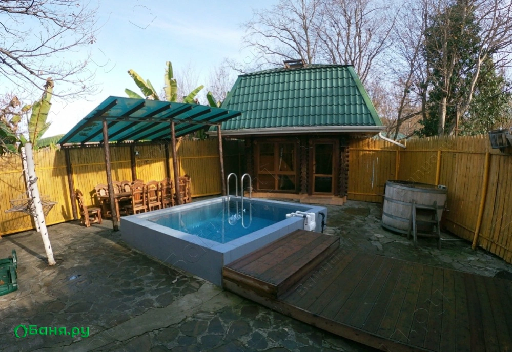 г. Адлер, р-н Чайсовхоза, п/о Орел-Изумруд, ул. Банановая, 144Двухэтажная баня с уютными комнатами отдыха, в которых может разместиться как тесный семейный круг, так и большая веселая компания. К вашим услугам удобная мягкая мебель и, конечно же, неотъемлемая часть хорошего отдыха для любой компании — караоке. В бане специально сделана купель с горячей водой и освежающая кадка с холодной. Приятная, прохладная, проточная вода в бассейне взбодрит перед ужином. К вашим услугам удобные, уютные бунгало на островке по берегу озера различной вместимости, оборудованные всем необходимым для пикника на природе. На прокат можно взять удочки, порыбачить и приготовить пойманную рыбу прямо на месте. Приглашаем вас на посещение действующего вулкана Ачигварский с голубой глиной и на купание в его жерле.