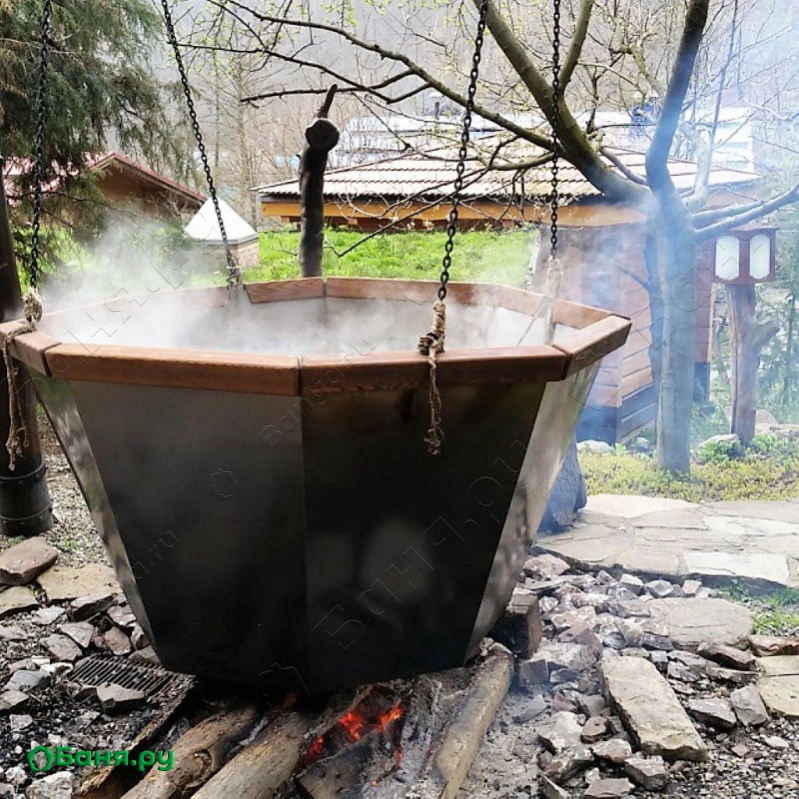 В комплексе есть горячая купель в виде чана на цепях и помещение для проведения процедур. Аренда комплекса подразумевает то, что весь комплекс и персонал работает только для Вас и вашей компании. После 23:00 стоимость посещения и всех процедур увеличивается в два раза.