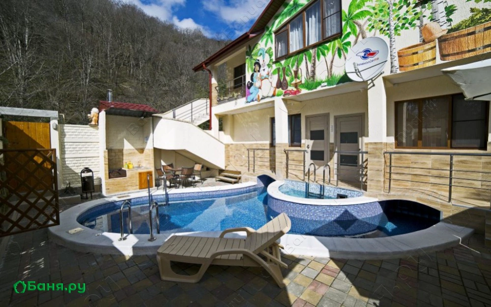 г. Сочи, пгт Хоста, ул. Апшеронская, 46Наша сауна в Сочи размещается в двухэтажном коттедже, расположенном в живописном месте на берегу реки Кудепста, вблизи лесного массива. На огороженной территории есть все необходимое для замечательного отдыха. Здесь все предусмотрено для комфорта посетителей.Приветливые сотрудники нашей сауны внимательно следят за поддержанием идеальной чистоты и круглосуточно готовы ко встрече дорогих гостей. А Чебурашка здесь просто живёт!И он не прочь завести новых друзей!
