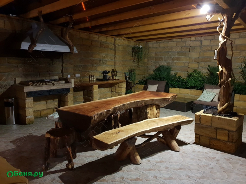 бассейн с водопадом под открытым небом, мангал, зона отдыха баня на дровах, зал с камином, зона кухни, мягкая мебель, ТВ (триколор)