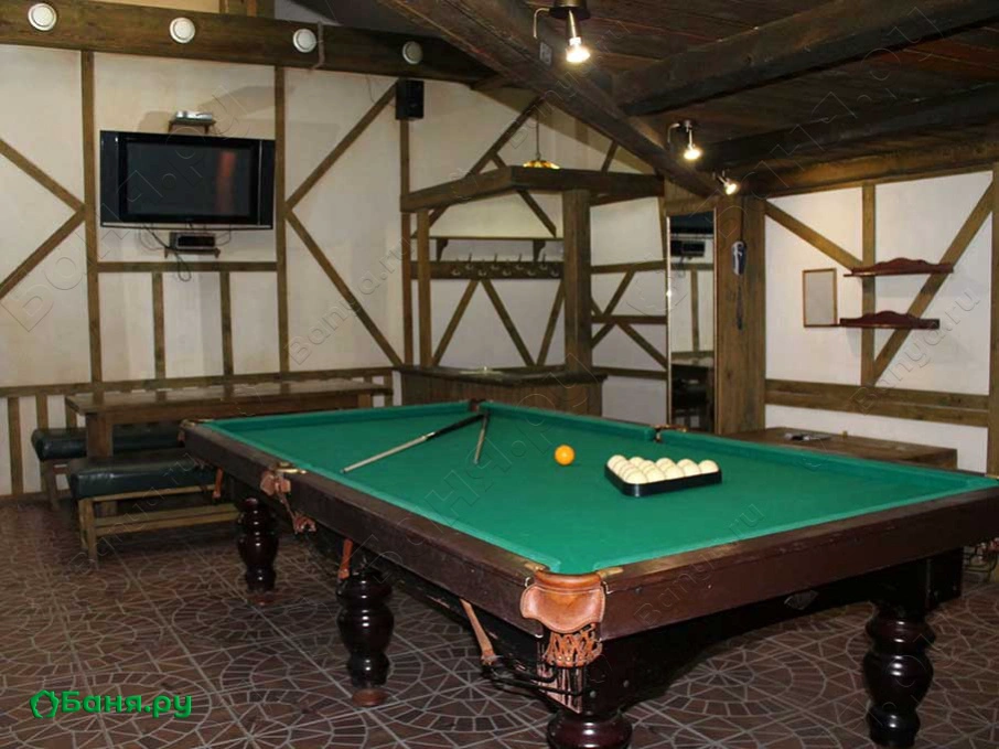 г. Ачинск, ул. Островная, 3А Номер "Елки палки" двухэтажный, располагает для отдыха как семьей, так и в кругу друзей. Большой бассейн с фонтаном приятно охладит после парилки. Ну а после водных процедур можно сыграть партию, другую в русский бильярд. Также можно выйти на веранду и освежиться на свежем воздухе.
