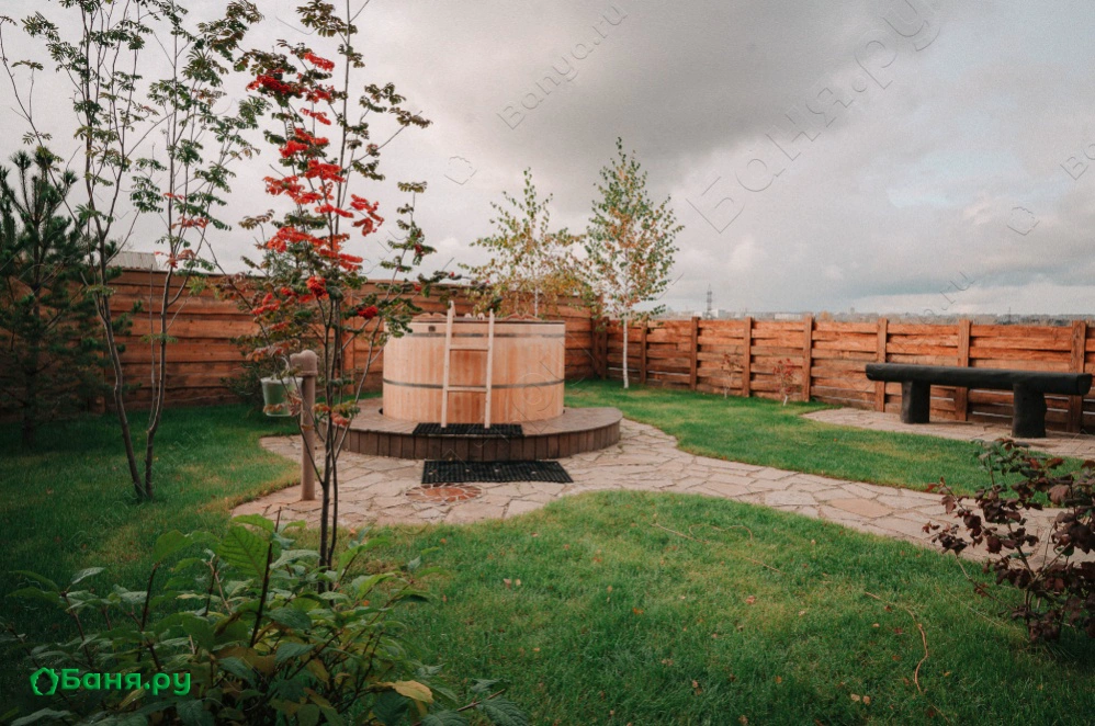 моечная с обливной кадушкой, санузел, зона отдыха с стол, посуда и мини-бар (снэки, безалкогольные напитки).