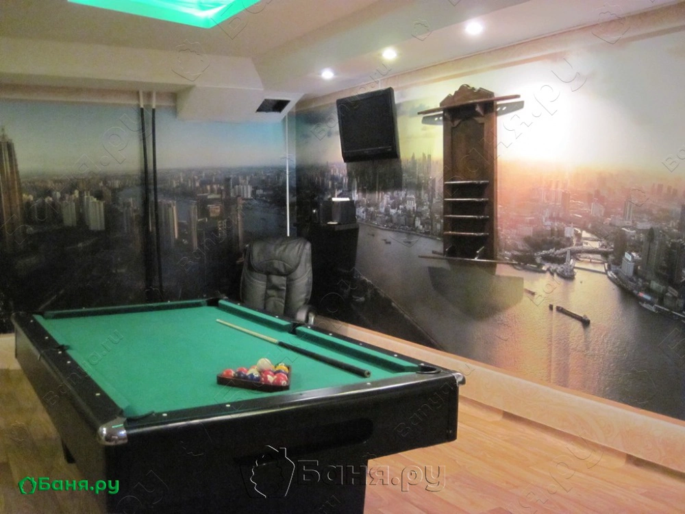 Русская баня с веничками – здесь можно и нужно приятно провести время, пропарить косточки, понежиться в джакузи, в просторной комнате отдыха сыграть в бильярд.