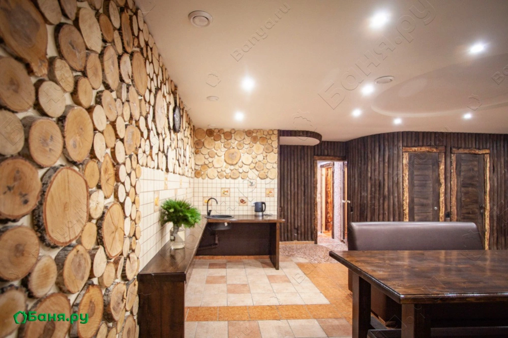 Вместимость сауны: 8 человек Виды парной: финская сауна, русская парная с вениками Сервис: обливное устройство, кабельное телевидение