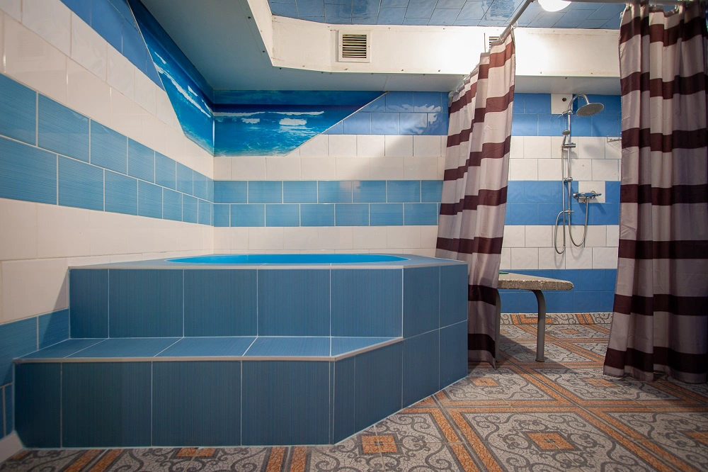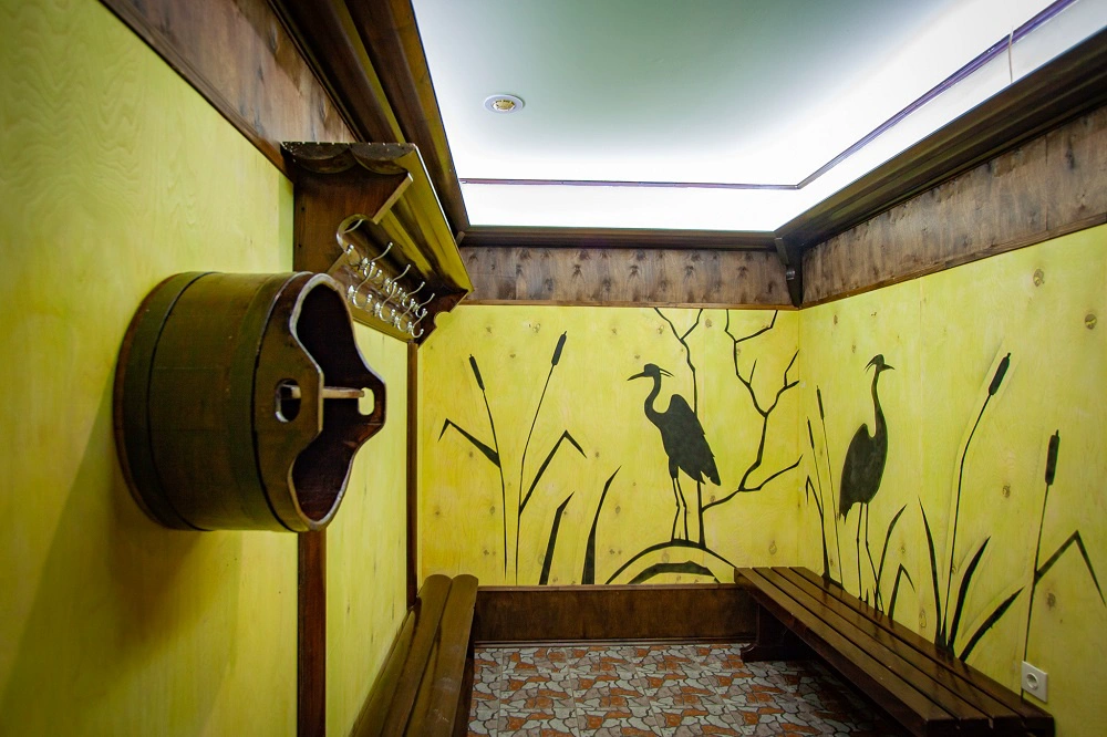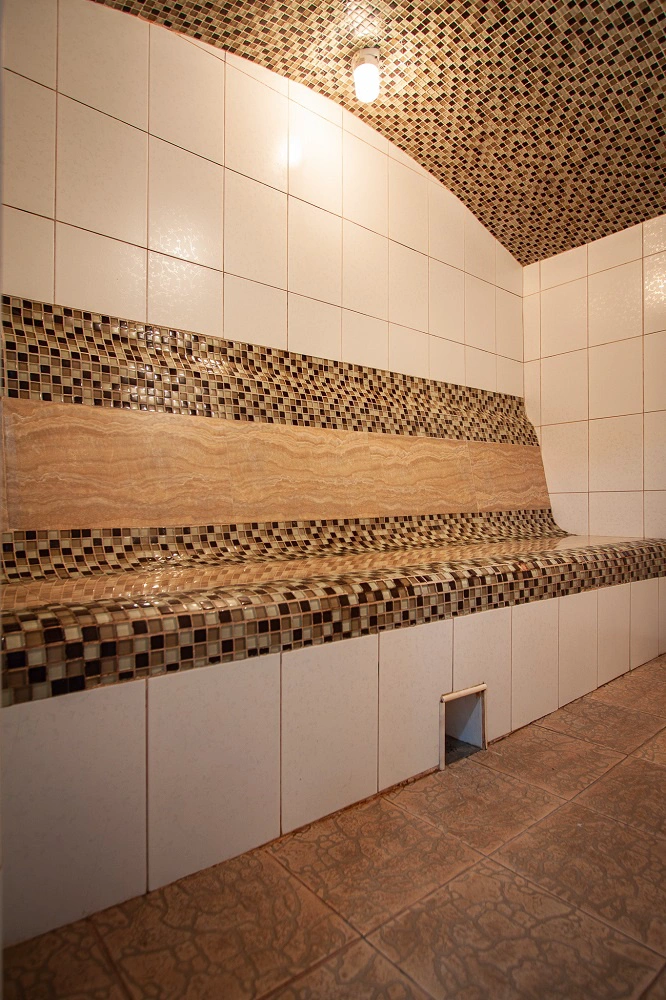 Вместимость сауны: 4 человека Виды парной: турецкая баня (хамам) Купель с прохладной водой: 1,4 х 1,5 м. Сервис: футбол, комната отдыха, кабельное телевидение