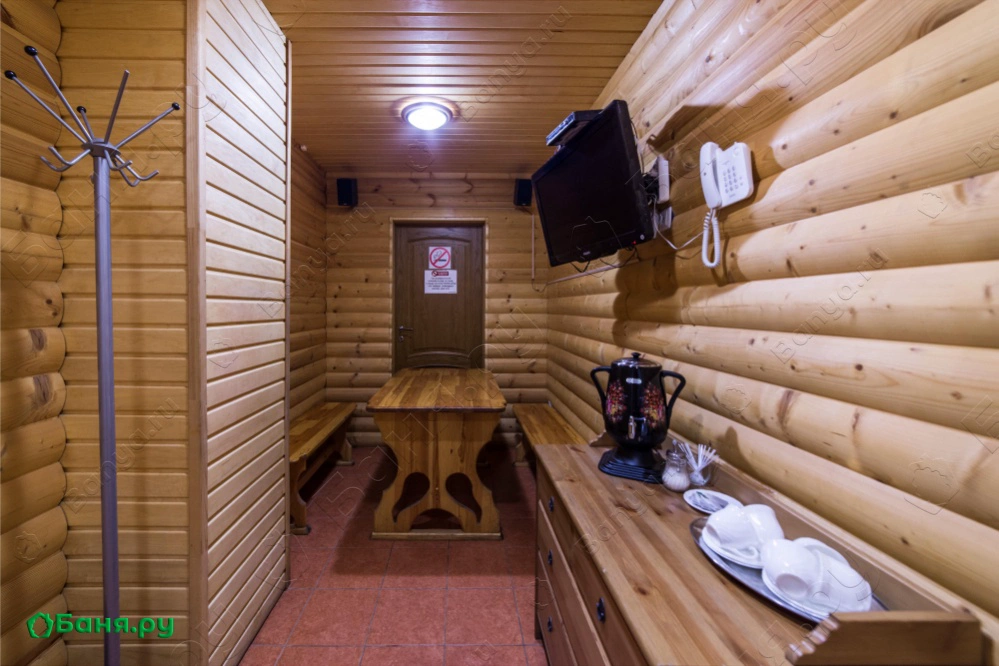 универсальная парная с вениками, душ, обливные кадушки комната отдыха с удобной деревянной мебелью ЖК телевизор, dvd, музыкальный центр с караоке