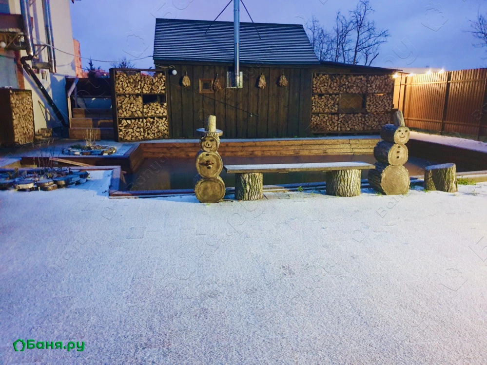 В малой сауне нет бассейна- не беда! На улице есть Банный чан и прудик. Всегда есть возможность освежиться после жаркой баньки!