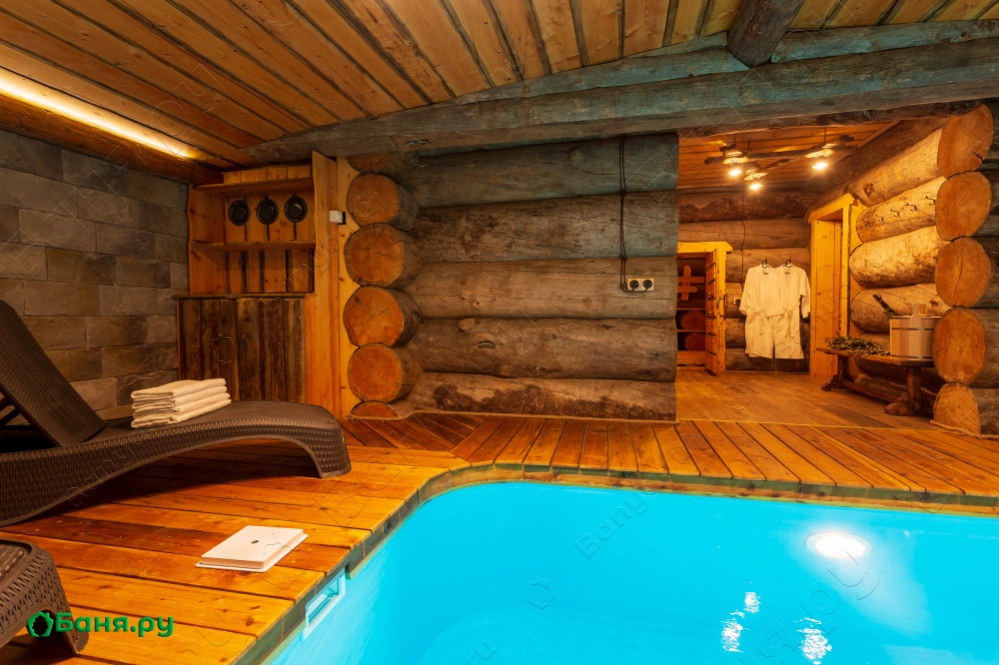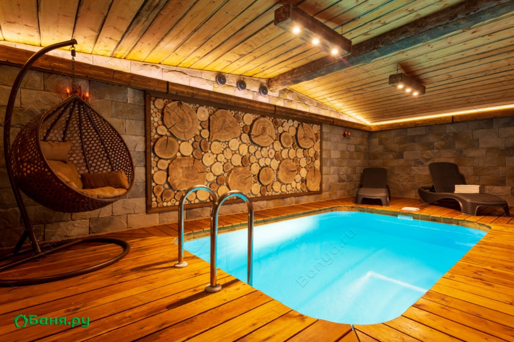 парная на дровах 16м2, бассейн с лежаками, 2 душевые