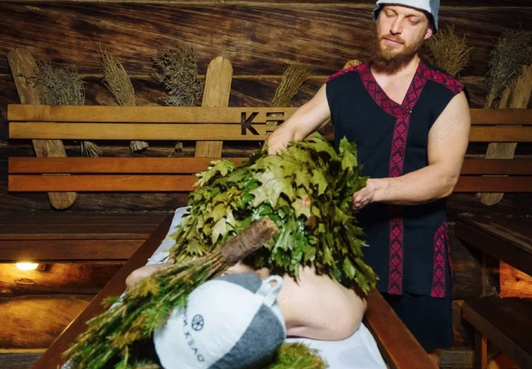 Парение-Программа ЗАБВЕНИЕ - Ритуал духовного вознесения Включено: 2 шт. - дубовые веники (для парения); 2 шт. - пихтовые веники (для лица); 2 шт. - травяные веники (для аромата).