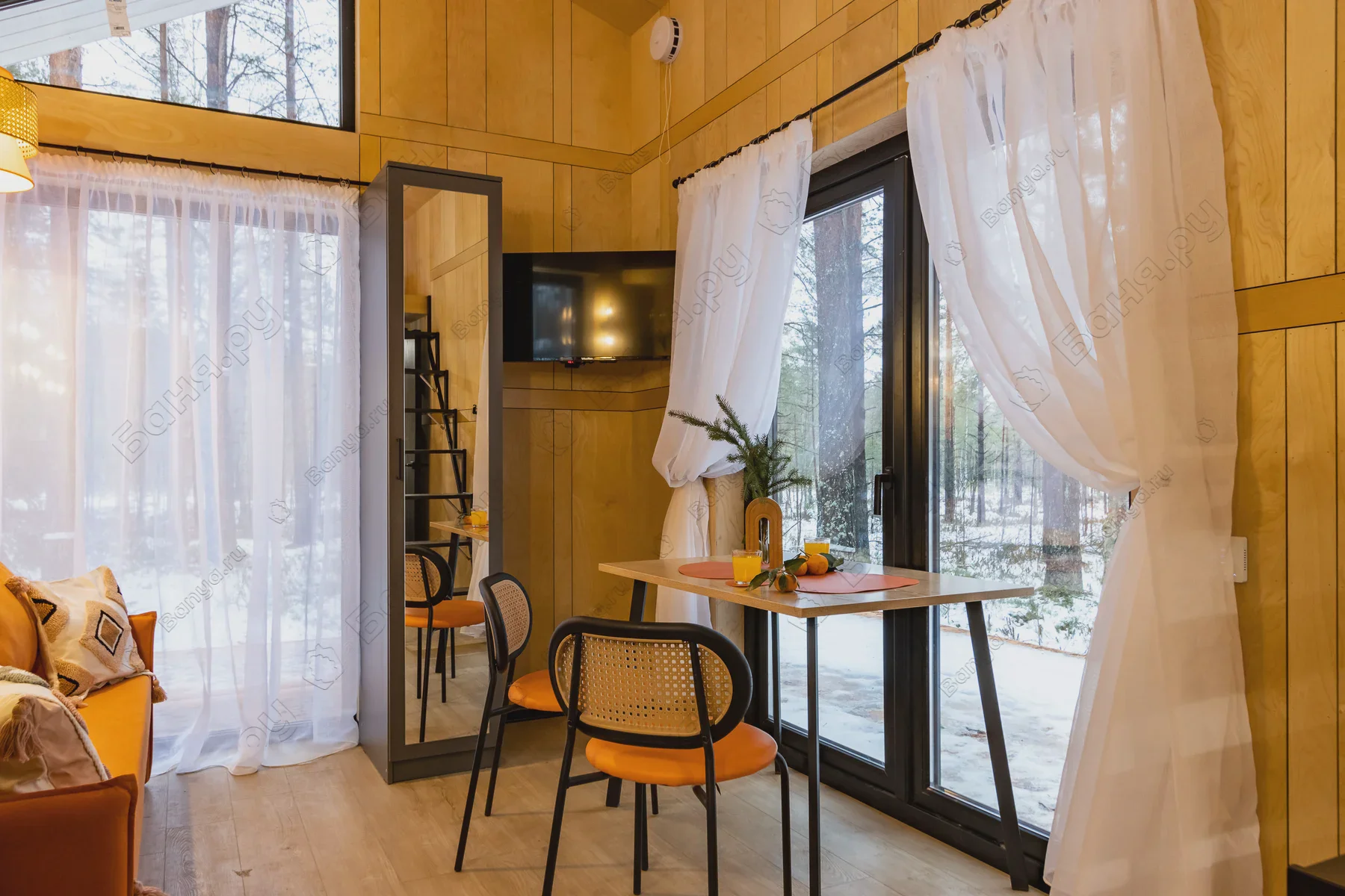 • В доме есть две сетки дров. Одну сетку дров гости получают бесплатно в качестве комплимента. Вторая сетка дров оплачивается отдельно — 500 ₽.