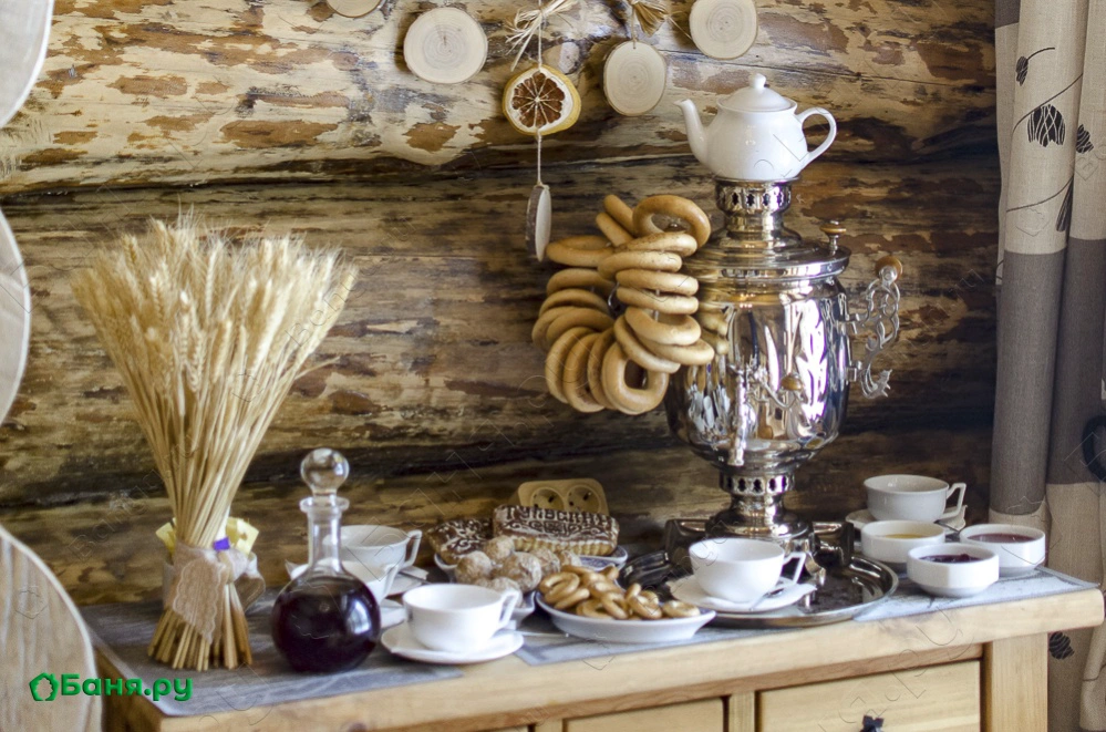 Рядом с баней чан, подогреваемый костром, беседка с барбекю и казаном.