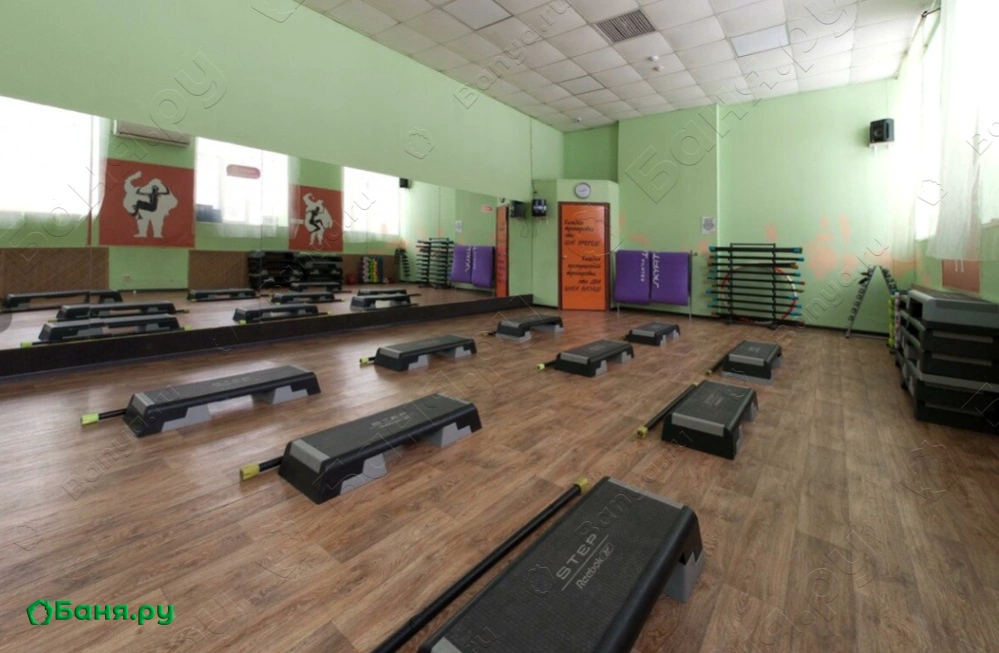 Небольшая финская сауна при фитнес клубе. Можно совмещать сауну и тренировки.