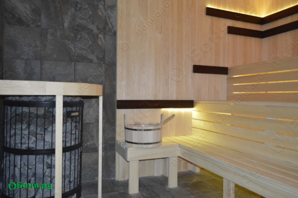 светодиодная подсветка в парной и акустическая система с релакс музыкой позволят полностью расслабится
