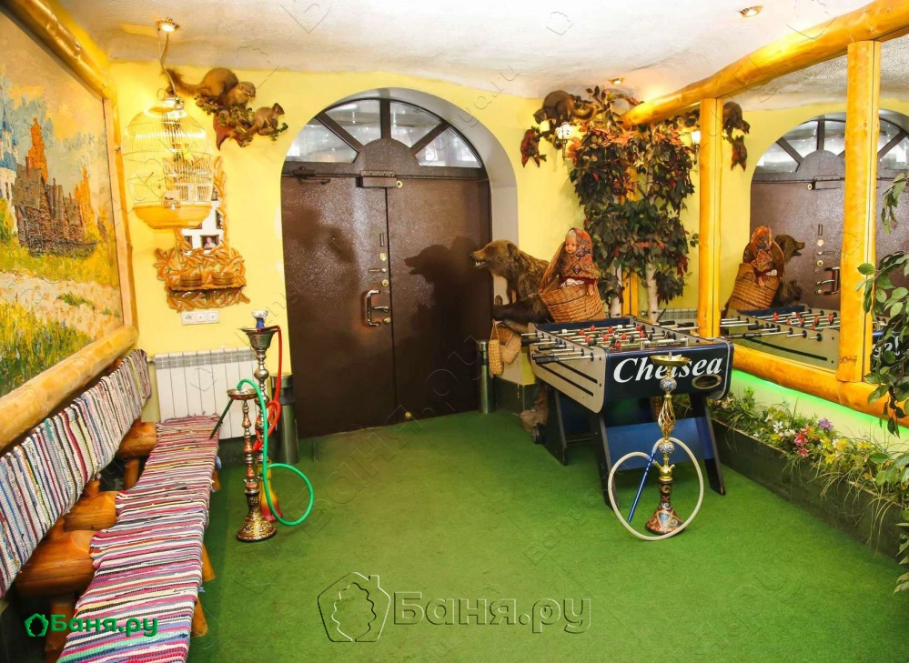 МО, г. Пушкино, ул. Красноармейская, 7Какой русский отдых может быть без настоящей русской бани?! К вашим услугам большая парилка и предбанное помещение, великолепный бассейн с чистейшей водой, а также все, что нужно для настоящей русской бани – березовые и дубовые веники и комфортабельная комната отдыха. Отдых в бане – это полезное и очищающее для души и тела мероприятие, позволяющее сбросить весь груз забот и городской суеты.