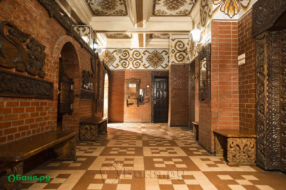 г. Москва, ул. 6-я Парковая, 21Измайловские бани — старинное здание 1953 года, расположенное в одном из красивейших уголков Москвы, недалеко от нас Измайловский остров, и повсюду много парков-садов. Современный интерьер был приобретен в 2002 году, после капитального ремонта. Тогда-то и появились роскошные мозаики с тематикой Петровских времен на стенах и потолках и затейливая резьба по дереву, которые отлично вписались в помпезную сталинскую архитектуру.Все это сделало баню привлекательной и единственной в своем роде!