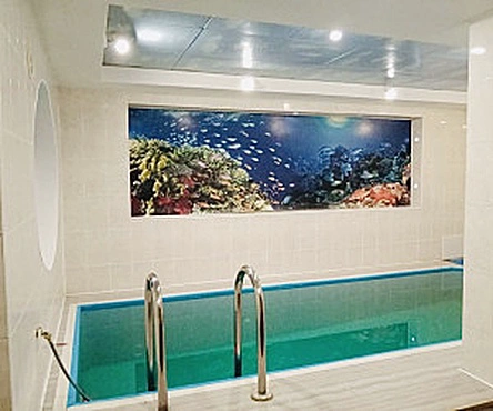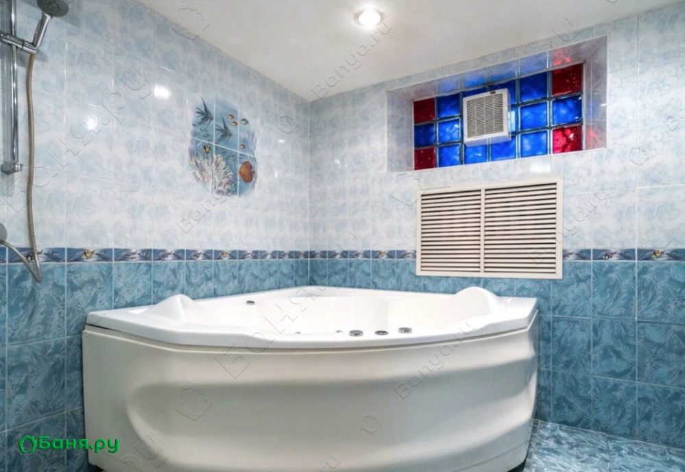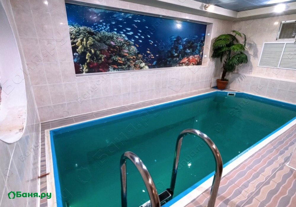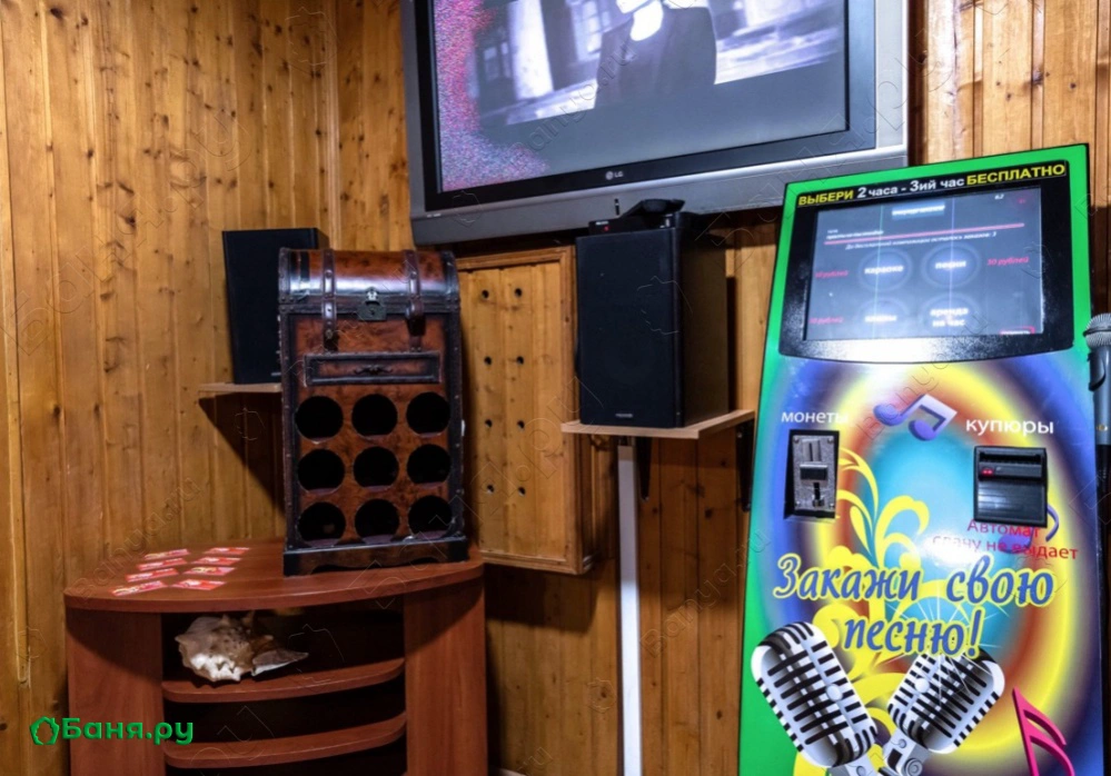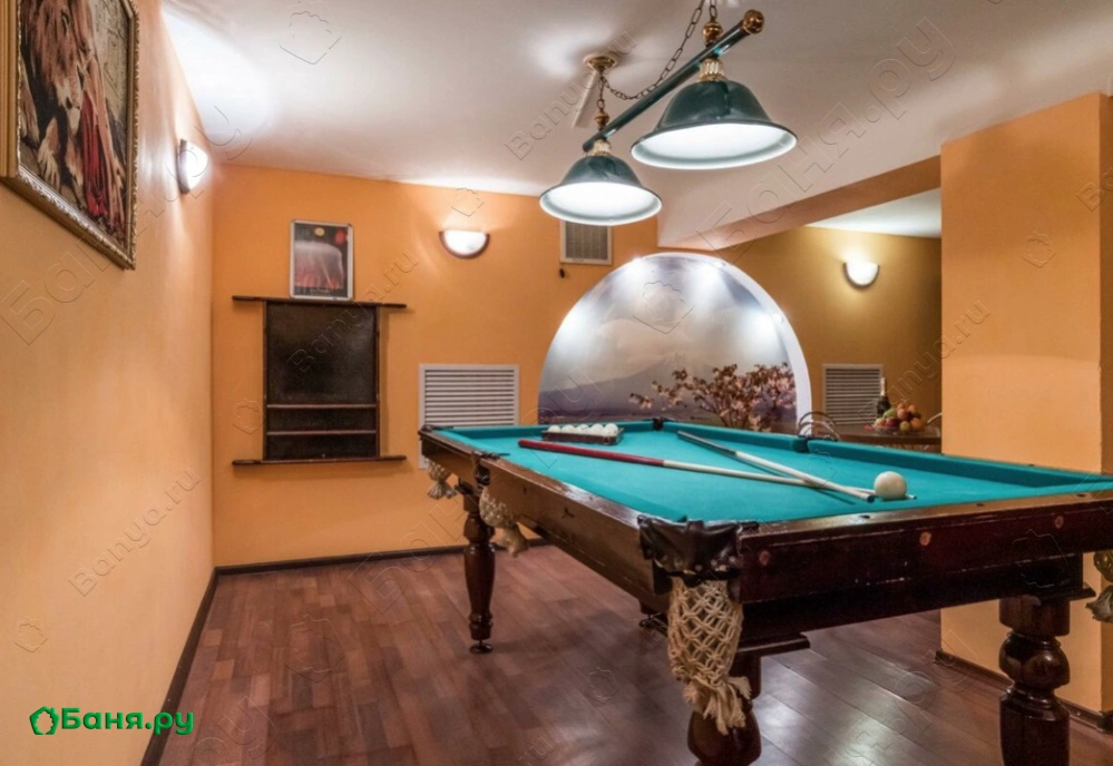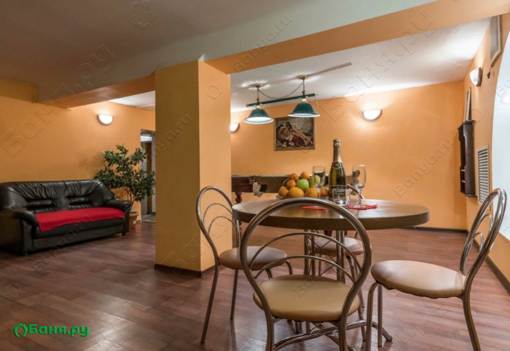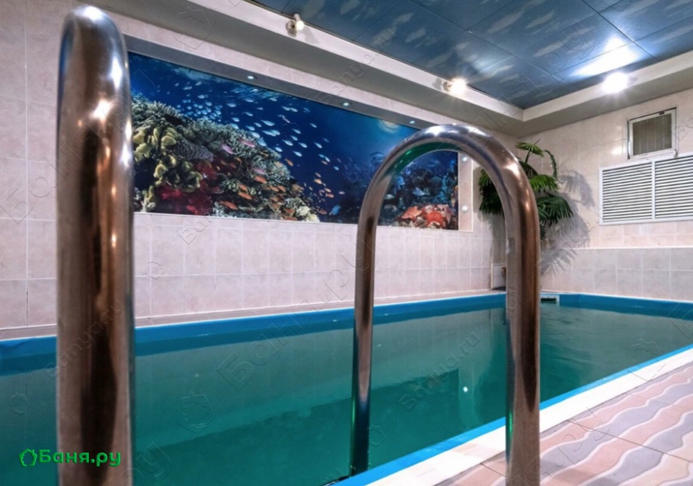 Зал отдыха рассчитан на 12 посетителей, он красиво оформлен и оснащен музыкальной и видеотехникой, здесь подключено спутниковое телевидение с каналами НТВ+, есть система караоке и кондиционеры. Для парения предназначена замечательная, очень горячая финская парная, в которой разрешается использовать веники. Чтобы осуществить контрастные процедуры, после парной можно принять прохладный душ или нырнуть в бассейн.