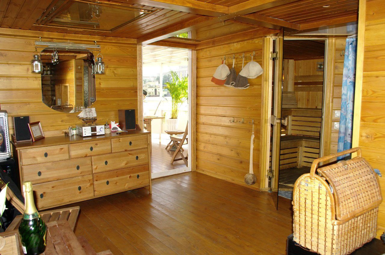 Единственная в своём роде, сауна (с выходом на собственную палубу) на теплоходе, плавающему по Москва-реке.
