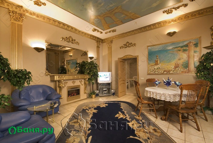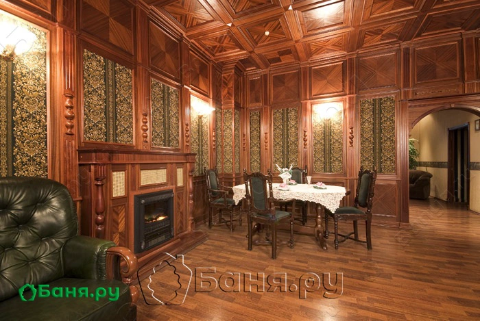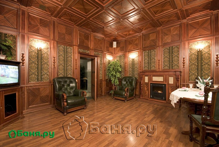 Великолепная сауна с двумя залами. Первый в классическом английском стиле, а второй в античном стиле.
