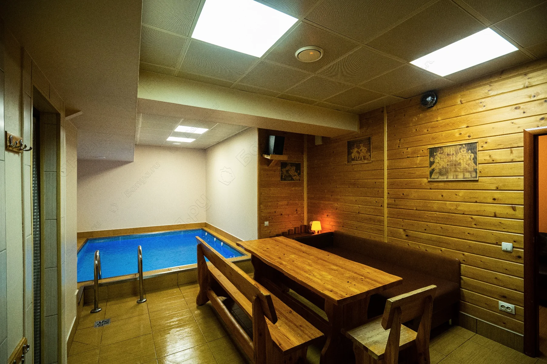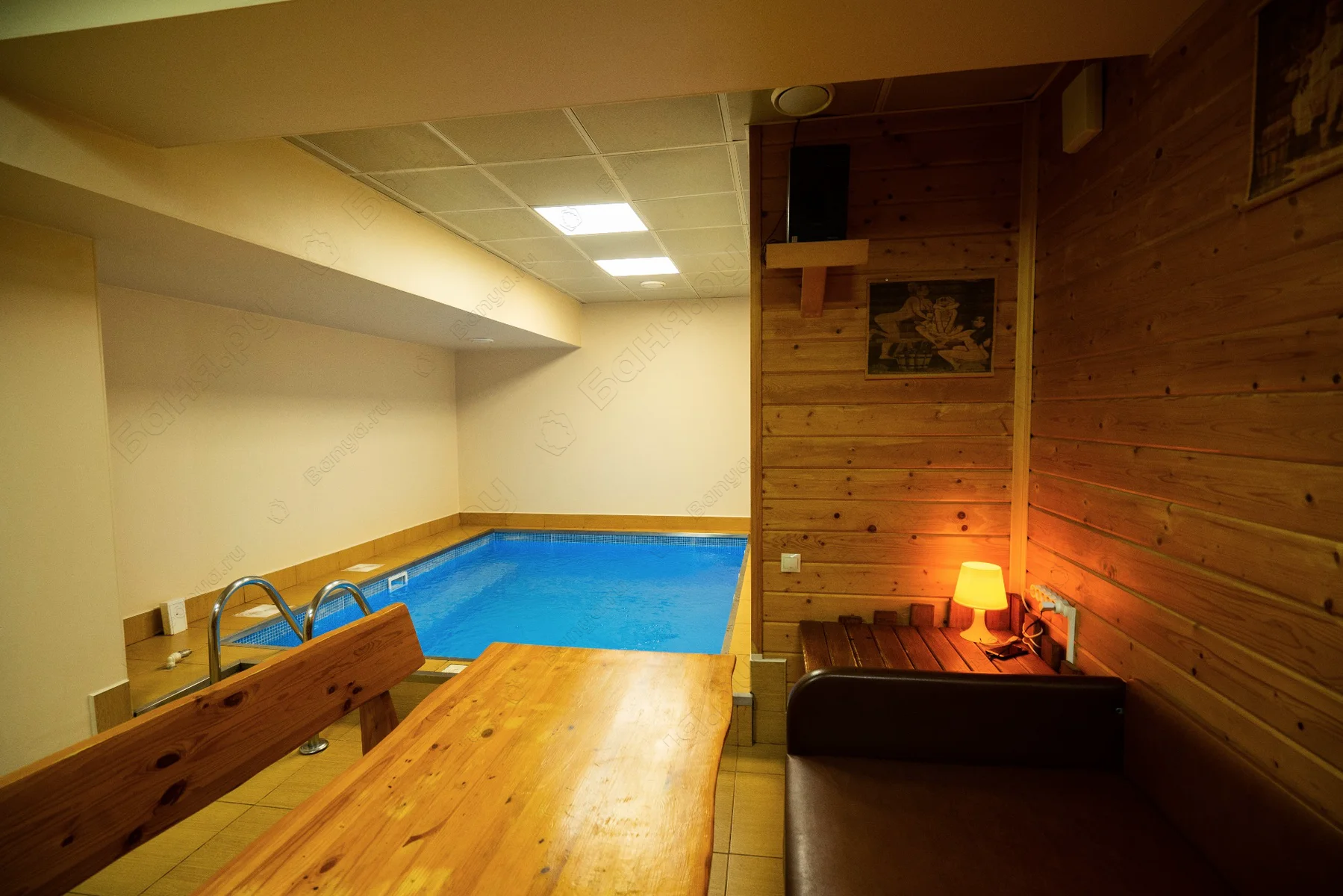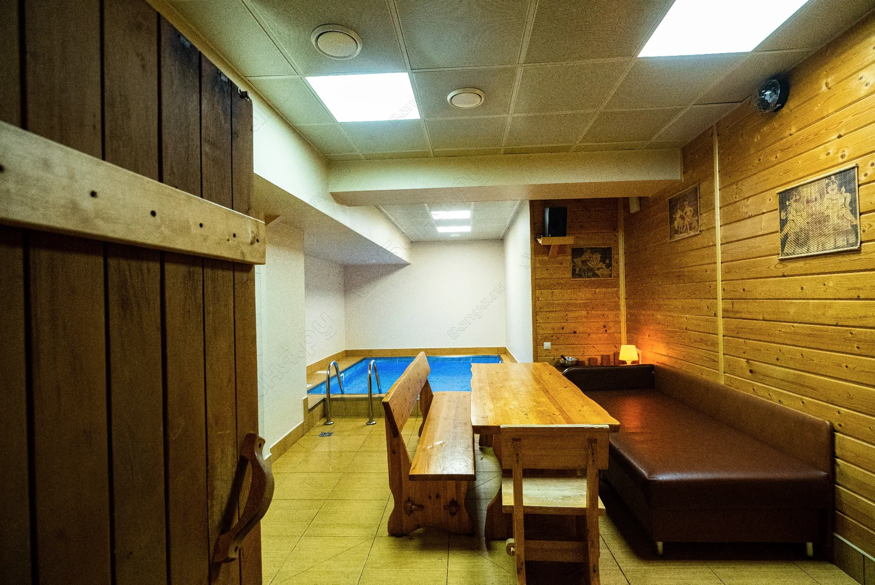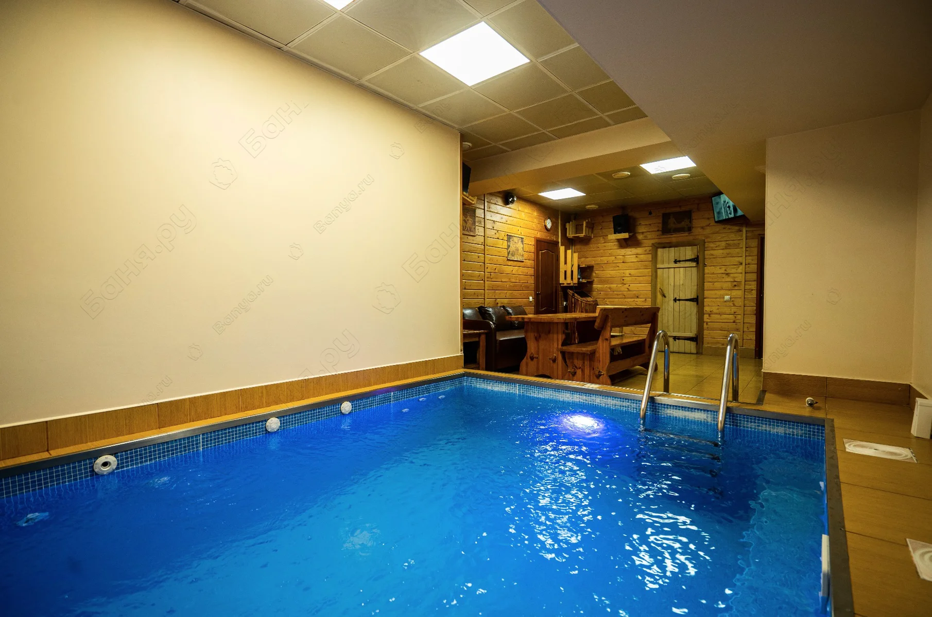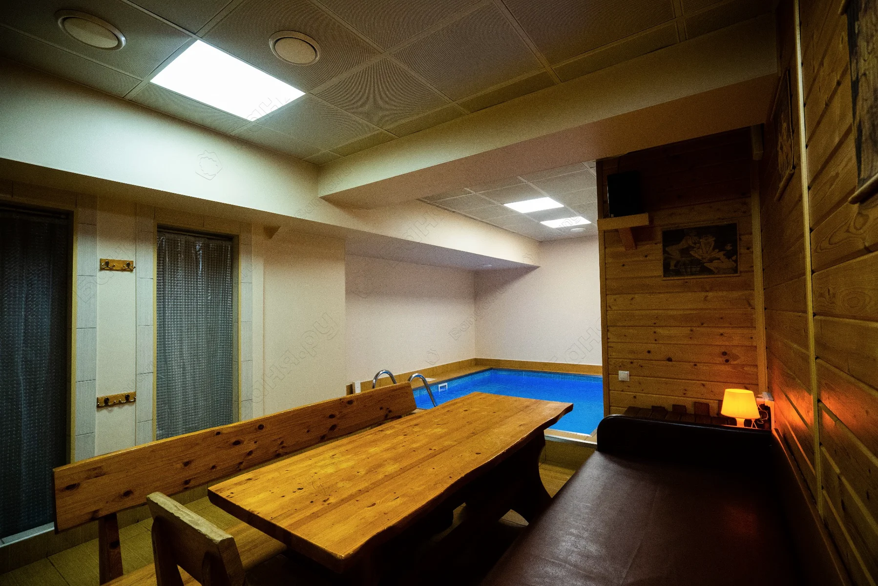 - финская сауна, выполненная из экологически чистых материалов, температура в парной достигает 110С с последующим купанием в бассейне.