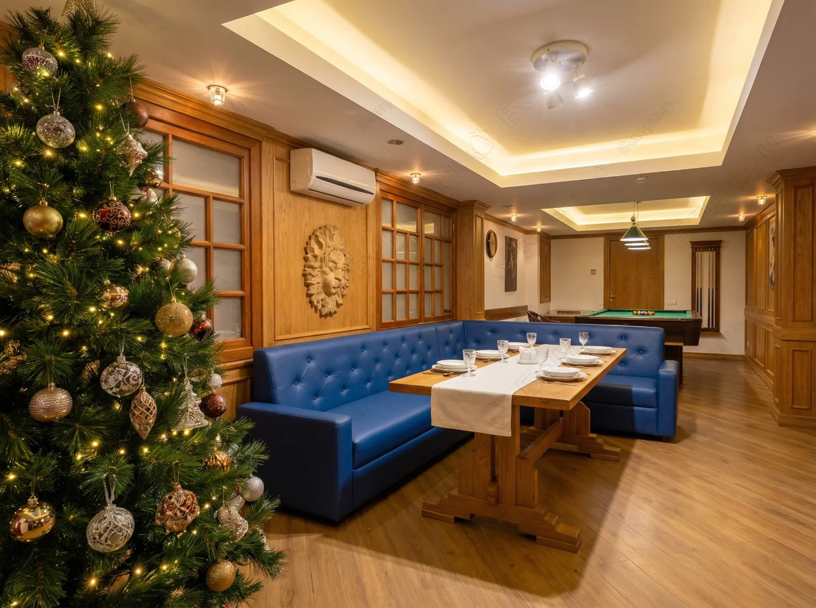 Работает свой Бар и имеется своя домашняя и русская кухня. За принесенные с собой продукты оплачивается пробковый сбор.