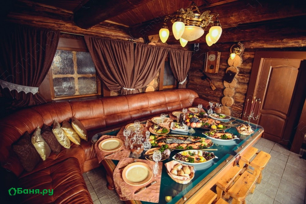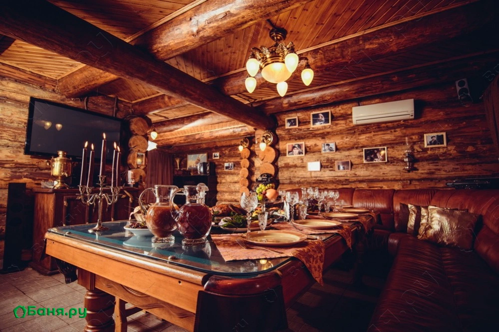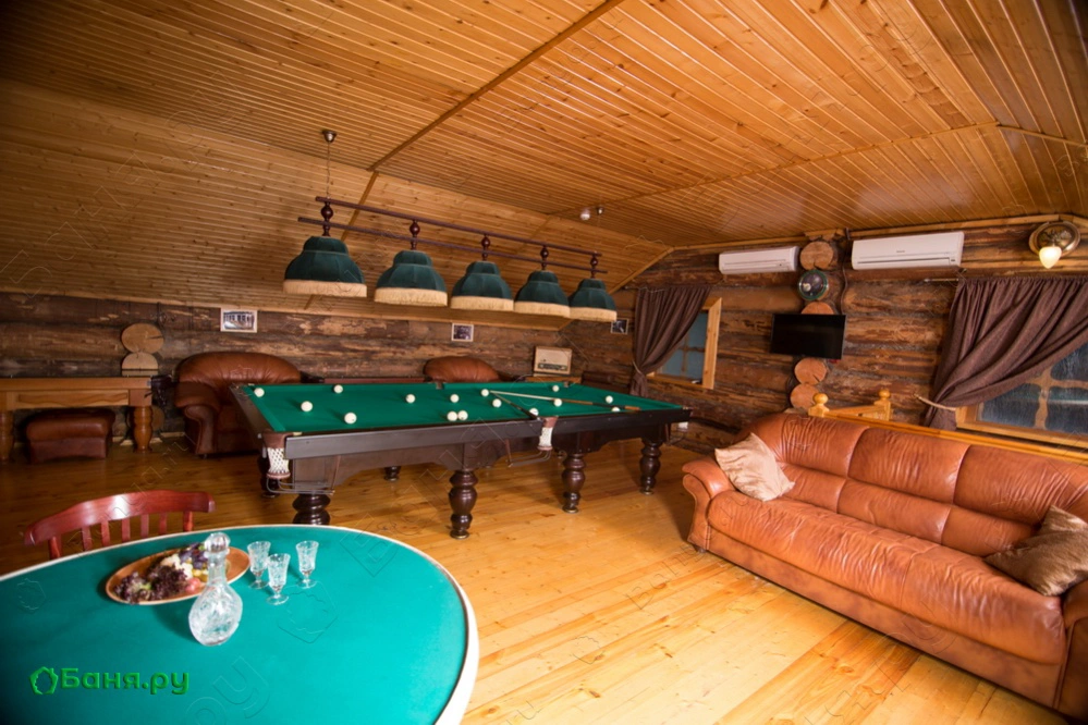 г. Москва, ул. Космонавтов, 22«Что за шум, а давки нет…» (Г. Жиглов). Интерьер данного терема выполнен по мотивам известного кинофильма. Необычный стол в трапезной, выполненный в форме бильярдного стола, легко разместит 12 человек. Просторная парная, с печью закрытого типа, способна прогреть сразу 8 человек. На втором этаже Вы сможете поиграть в 12 футовый русский бильярд или отдохнуть после процедур в одной из трёх комнат отдыха. Во внутреннем дворике можно окунуться в прохладный бассейн или посидеть за столиком и попить чаю с нашим натуральным мёдом. Домик оборудован современной аудио и видео аппаратурой, караоке. Приятного Вам отдыха!