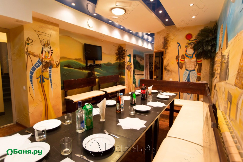 ул. Писарева, д. 89Авторский дизайн интерьера – стены расписаны вручную в египетском стиле Большая зона отдыха. В парилке подогрев пола, полок сделан из разных видов дерева. Бассейн с декоративной подсветкой.
