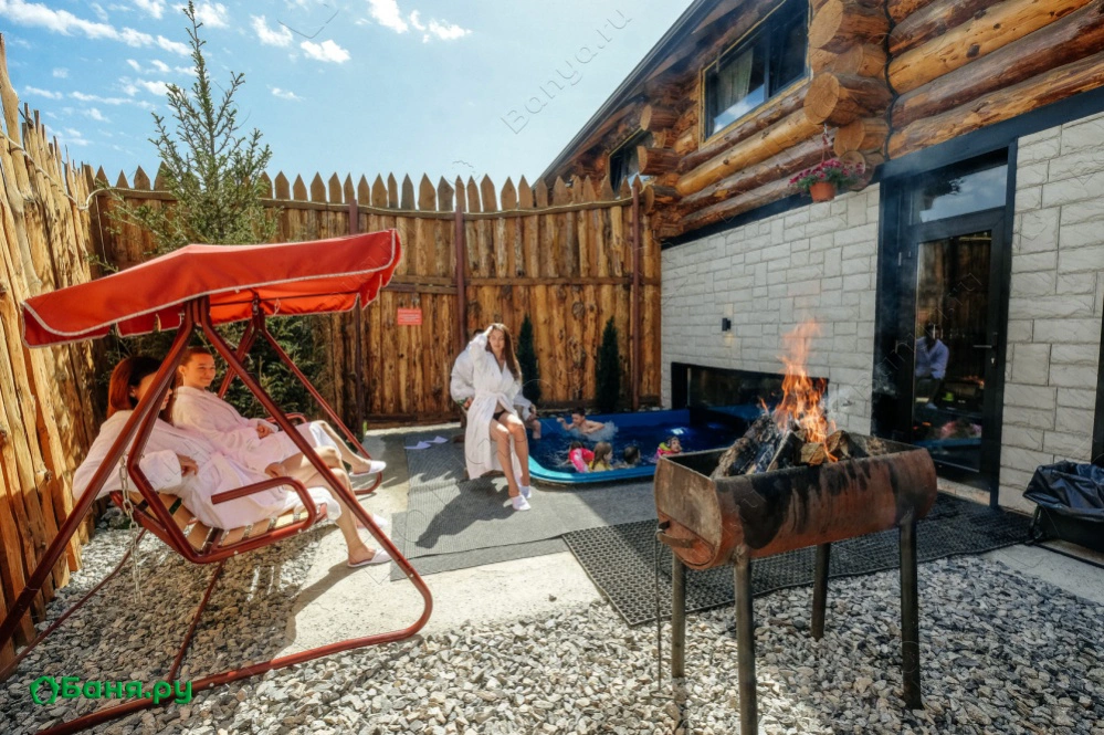 Дворик: мангальная зона, качели, бассейн, зимой обтирание снегом