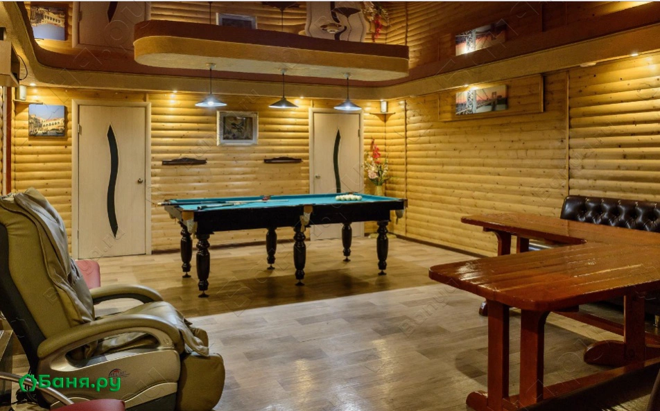 Не хочется в бассейн? Не беда! Вместо этого можно провести время в нашей комнате отдыха. Мы ставили своей целью создать здесь уютный, практичный интерьер из преимущественно натуральных, безопасных материалов, подобрать мебель, которая будет в равной степени удобной и приятной глазу. Надеемся, что вам понравится! Для поддержания атмосферы отдыха мы можем предложить вам бильярд и караоке. Также у нас имеется бар.