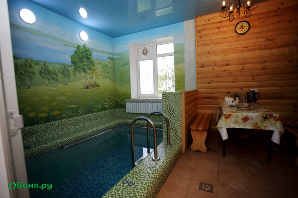 г. Оренбург, ул. Ленинградская, 27Дизайн интерьера выполнен в русско-народном стиле, что дает положительный заряд энергии и ощущение умиротворенности (как будто находишься в лесу) Бассейн расположен на выходе из парной, что дает возможность сразу окунуться в воду.