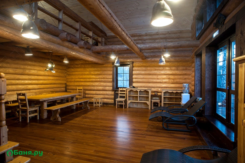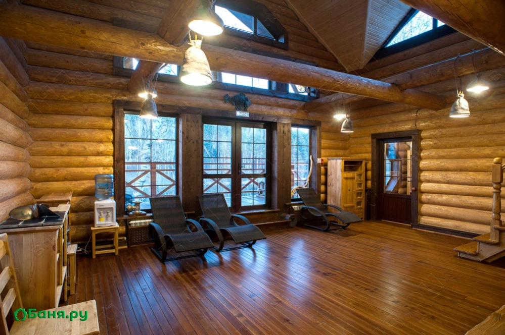 Шикарная двухэтажная баня из экологически чистого деревянного сруба, находится на берегу озера и оснащена безопасным спуском к воде.