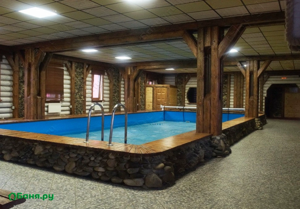 Две парные (финская и турецкая), бассейн 100 куб.м., душевая, санузел, комната отдыха с телевизором, караоке и русской печью-все это ждет вас у нас в зале.