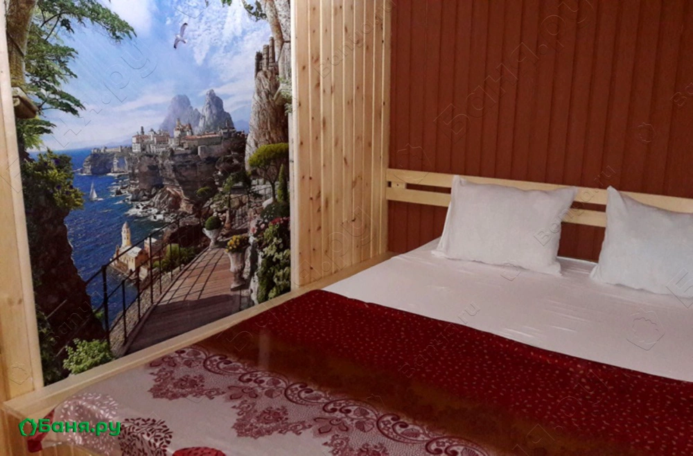 Приморский край, г. Артем, ул. Севский 1-й пер., 47В просторной парилке, отделанной липой, легко дышится, т.к. установлено хорошее оборудование, правильно подобраны камни и устроена система вентиляции. В комнате отдыха мягкие диваны, большой деревянный стол, чайник с посудой, светомузыка. Рядом со входом есть место, куда можно выйти посидеть, подышать свежим загородным воздухом или просто охладиться после жарких процедур. А для уединенного отдыха - комната с оригинальной деревянной кроватью и видом на море!
