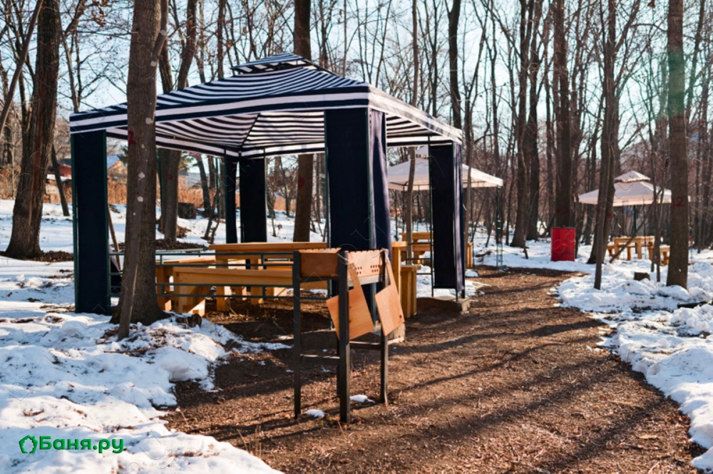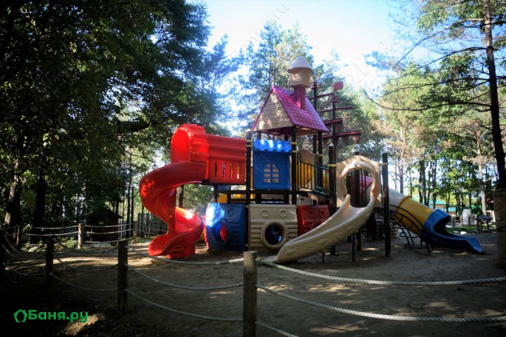 Интерьер настоящей русской бани выполнен в этническом - русском стиле. У нас есть детская игровая площадка с батутами, где Ваши дети смогут весело провести время. Так же мы можем предложить воспользоваться нашей уютной шашлычной поляной.