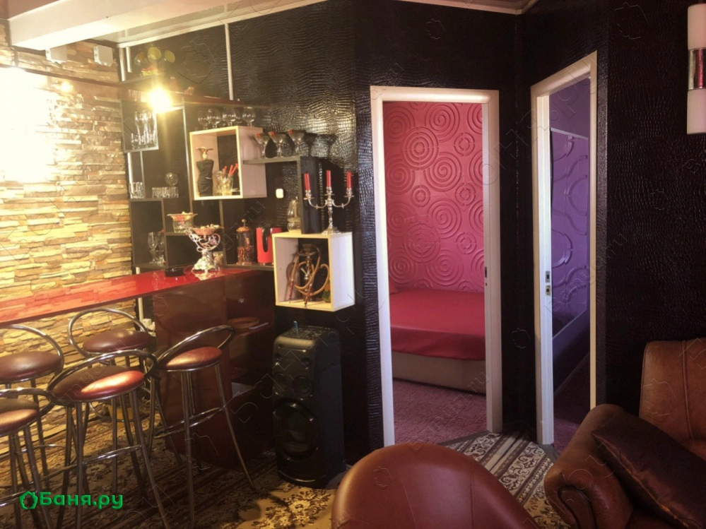 г. Владивосток, ул. Снеговая, 18аИнтерьер бани выдержан в русском стиле. Зона отдыха - роскошная и уютная с кожаной мебелью.