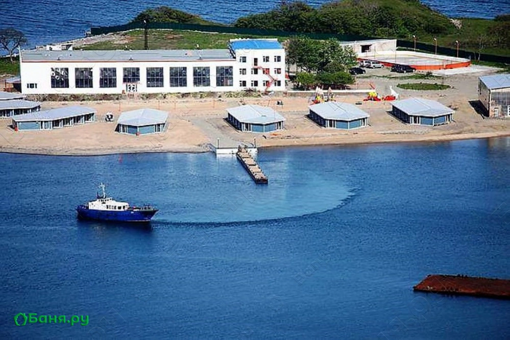 Сауна находятся в северной части спортивного комплекса в непосредственной близости от моря. Состоит из собственно парилки с печкой-каменкой, комнаты отдыха, туалета и душевой. Перед баней — комфортная мансарда, где можно расслабиться и понаблюдать морские пейзажи. Есть площадки для барбекю. На территории расположен крытый бассейн с солёной водой! Вода в бассейне постоянно подогревается, а его глубины варьируются 0,5 до 1,5 метров. В здании бассейна расположены две сидячие ванны с подогревом. Также имеется два оборудованных каменистых пляжа (один из которых оснащен пластиковыми пирсами для ныряния) и один песчаный (детский — до 1 м глубиной). Для удобства схода в воду установлены два плавучих пирса. Проведение корпоративных и торжественных мероприятий. Есть детская творческая мастерская и детская комната для игр.