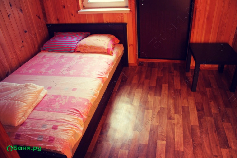 Комфортная баня с двумя комнатами отдыха на втором этаже. Баня расположена выходом к лесу, так что Вам никто не помешает насладиться Японской баней фурако. Спутниковое TV, музыка.